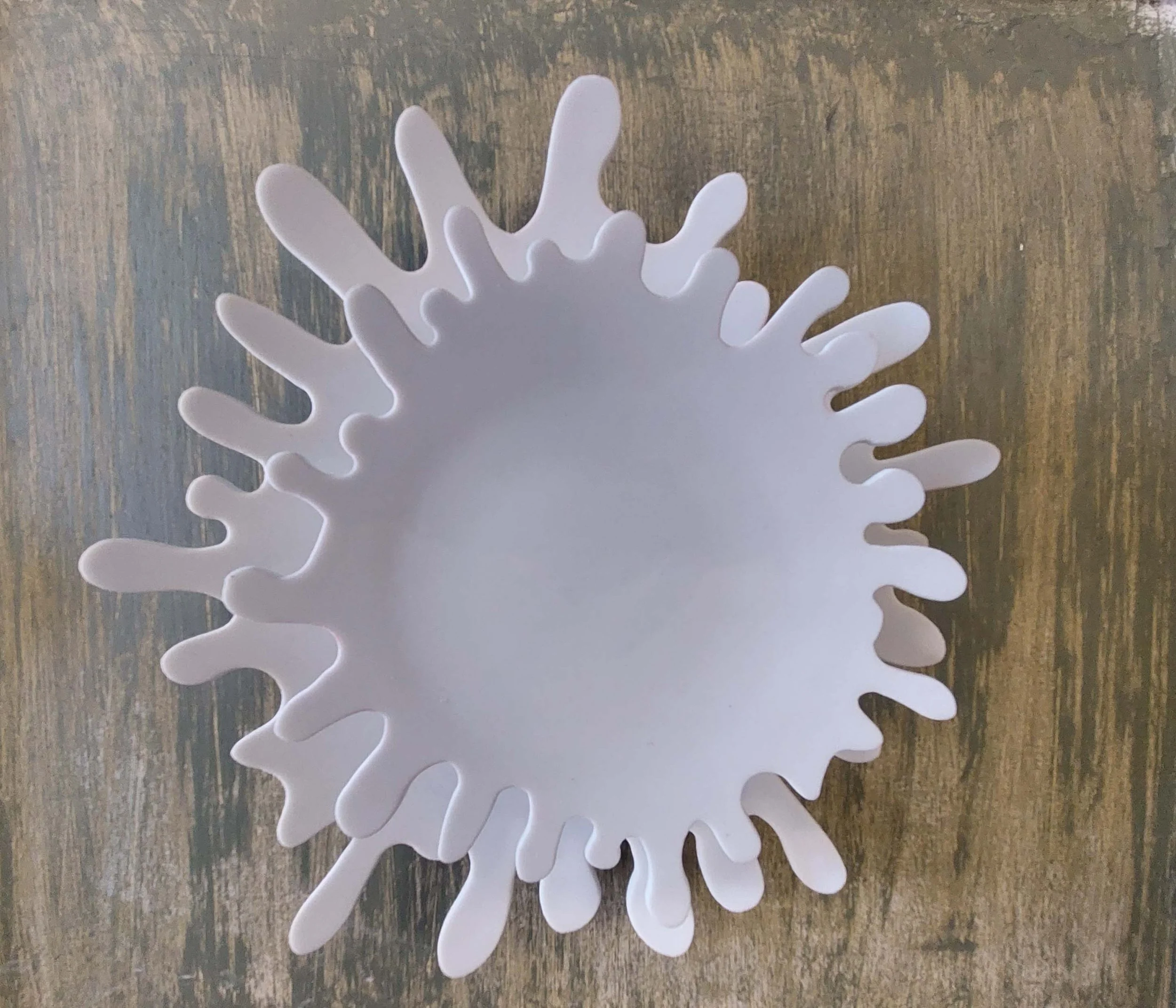Entièrement ciselé comme un tuilage de feuilles, une couronne de porcelaine qui reçoit son bol échancré, pour des desserts à double détente . .