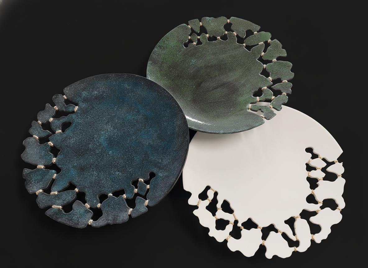 Découpé à la main au fil diamanté, cette collection décompose et recompose les morceaux d’assiettes pour vous offrir une présentation unique ou chaque pièce est unique